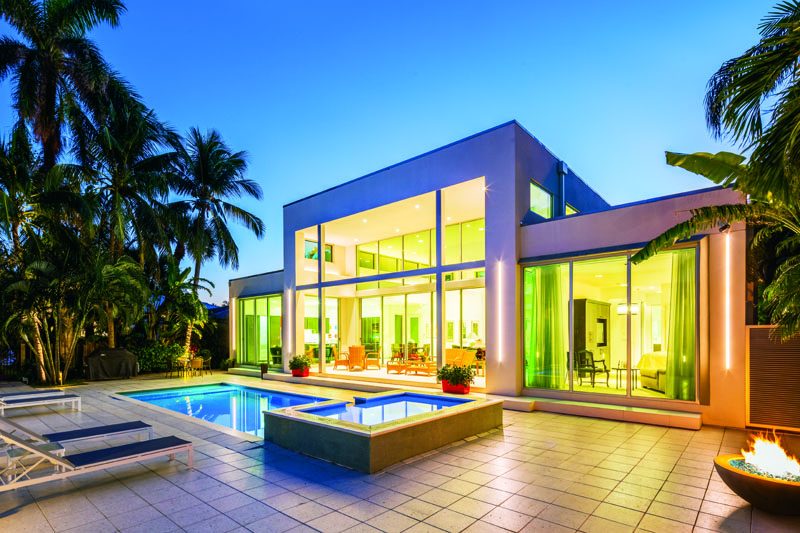 This contemporary masterpiece located in Seven Isles provides endless views of the Intracoastal Waterway perfect for entertaining and more. The property sits on a 10,730-square-foot lot and has four bedrooms and three and a half baths.