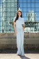Catherine Asymmetrical Pleated Maxi Dress in Baby-blue by Miss Rosier, $265, available at miss-rosier.com. Wooden Bangles by Zara, $45, available at Zara. Golden Hoop Earrings with Bead by H&M, $25, available at H&M. Nude Pointy Pumps by Alaia, $1,150 by Alaia, $1,150, available at Bergdorf Goodman.