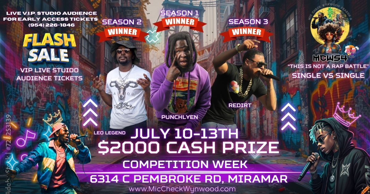 Mic Check Wynwood Season 4 — What it is Mic Check Wynwood is a five‑day live music and artist showcase in Miami’s Wynwood Arts District that spotlights emerging vocalists, rappers,…