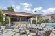 The outdoor experience is every bit as decadent as the interior. Two full-sized swimming pools take center stage, one with an attached hot tub and the other styled with daybeds submerged in the water. A third pool functions as a water bar, complete with submerged bar stools for resort-style sipping. A second hot tub and an outdoor amphitheater add to the experience, along with an alfresco lounge space modeled after the Versace Mansion’s Moroccan room.