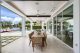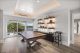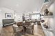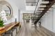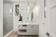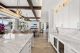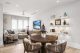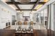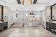 In the dining area, which flows right into the kitchen, there’s more of that seamless zone transition. The kitchen island fits 10 and is wrapped in marble. It’s built for a crowd, as is the butler’s pantry tucked behind, which receives natural light from windows that wrap the space. Hidden outlets, smart cabinetry and a walk-in wine cooler complete the kitchen’s clean aesthetic.