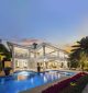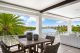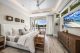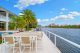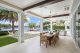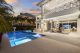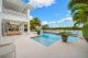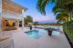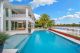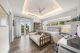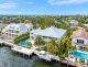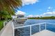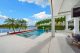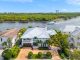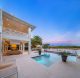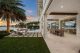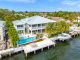 A separate outdoor walkway leads to the guest quarters (aka in-laws suite), which has its own entrance for privacy, and includes a bedroom, bath, breakfast nook and pool views. Back outside, the covered patio features its own A/C system, a roll-down TV from the ceiling, a saltwater pool and a built-in hot tub, plus a fire pit, summer kitchen with a wet bar, fridge, ice maker and storage for the post-boat ride lounge. Speaking of boats, there’s a lift and dock included, naturally.