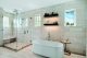 But let’s back up. The 6,139-square-foot home is a study in balance: coastal without cliché, tech-savvy without showing off and open without losing warmth. The front walk opens to a courtyard that leads into the main living area where the show begins: floor-to-ceiling windows, a custom fireplace that changes colors, built-in shelving and, in what might be the most unexpected feature, a 900-gallon saltwater tank built right into the wall, separating the lounge from the living room. It’s stocked with live coral and fish, turning cocktail hour into something a little more cinematic.