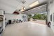 Inside, the finishes speak to restraint and function. Electrical outlets are discreetly positioned along the baseboards. Laundry machines? Hidden within cabinetry. A concealed garage door connects one of the two garages directly into the main home. The upstairs loft functions as a game and lounge area, complete with its own kitchenette and access to a second outdoor terrace. There’s even a second laundry room, because why not?