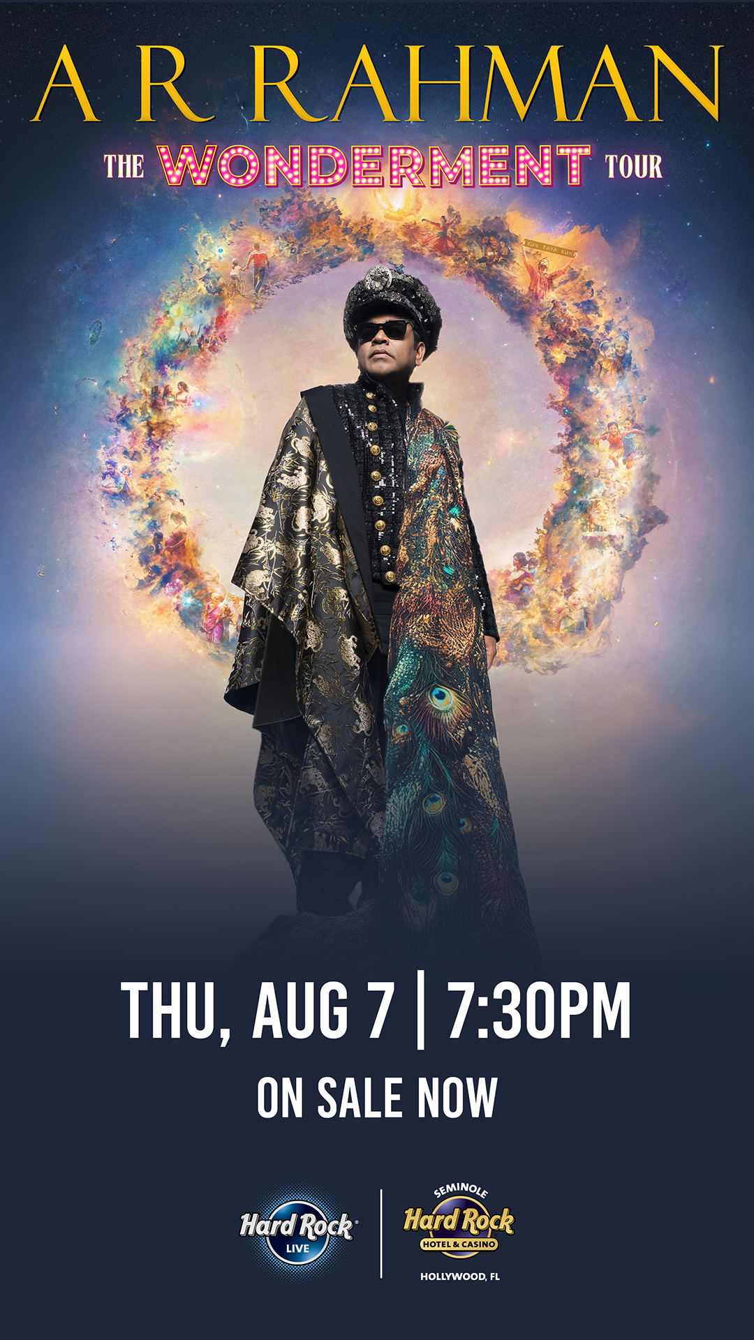 Hard Rock Live 1 Seminole Way, Hollywood, FL, United StatesOscar and Grammy-winning composer, songwriter, and international recording superstar A.R. Rahman will launch his highly anticipated “The Wonderment Tour” across North America in the Summer of 2025. The 16-date arena…