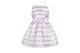 This sleeveless white dress features gold metallic and lavender stripes and a centered bow. The Sweetie Stripe Bodice Dress by Hucklebone is a perfect dress for any special and formal function. $180, Available at merrylovejoy.com.