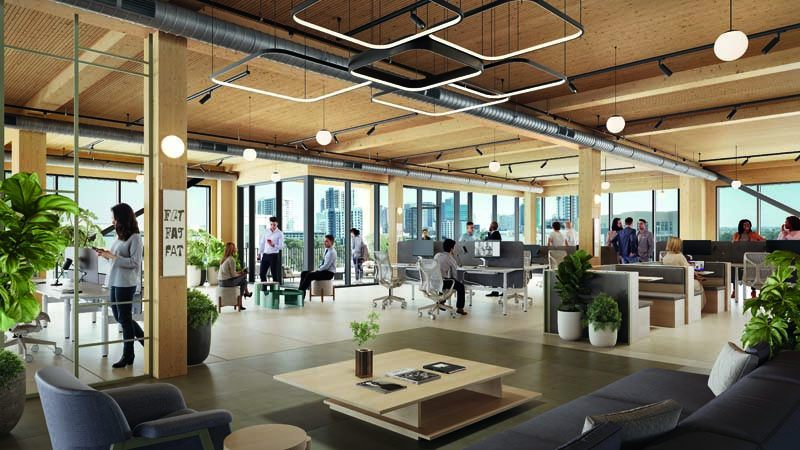 And while it feels rooted in the present, the building is engineered for the future. “That’s a core part of the Hines T3 philosophy, which stands for timber, transit and technology,” Kennedy says. “The building is highly adaptable, with flexible layouts and efficient systems that can evolve with tenants’ needs. Technologies include real-time indoor air quality and energy consumption monitoring, along with the ability to make instantaneous operational changes that support comfort and sustainability.” The approach reflects a growing demand among tenants for spaces that not only look good but also align with their values.