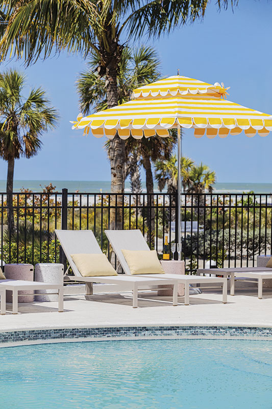 At the center of it all is Lido Key, a barrier island that’s home to Cirque St. Armands Beachside, the newest boutique hotel from the Opal Collection. Just steps from the sand and around the corner from the shops and cafés of St. Armands Circle, Cirque doesn’t just nod to Sarasota’s circus heritage; it embraces it, spins it into gold and hangs it from a chandelier.