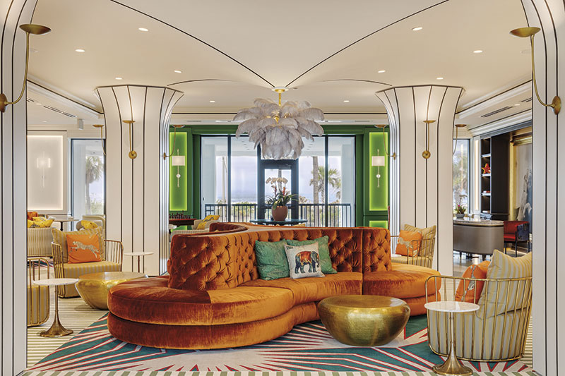 As for Cirque St. Armands Beachside, this isn’t just a place to sleep; it’s part of the story. Circus meets Moulin Rouge in pin-striped columns, velvet drapes, feather chandeliers and floor-to-ceiling windows with Gulf views. Each of the 135 guest rooms is dressed in sandy tones, bronze accents and vintage circus photos that pay homage to Ringling’s traveling days and Sarasota’s own colorful past.