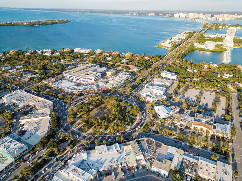 A walkable mix of upscale shops, sidewalk cafés, galleries and live music, just steps from Cirque St. Armands Beachside.