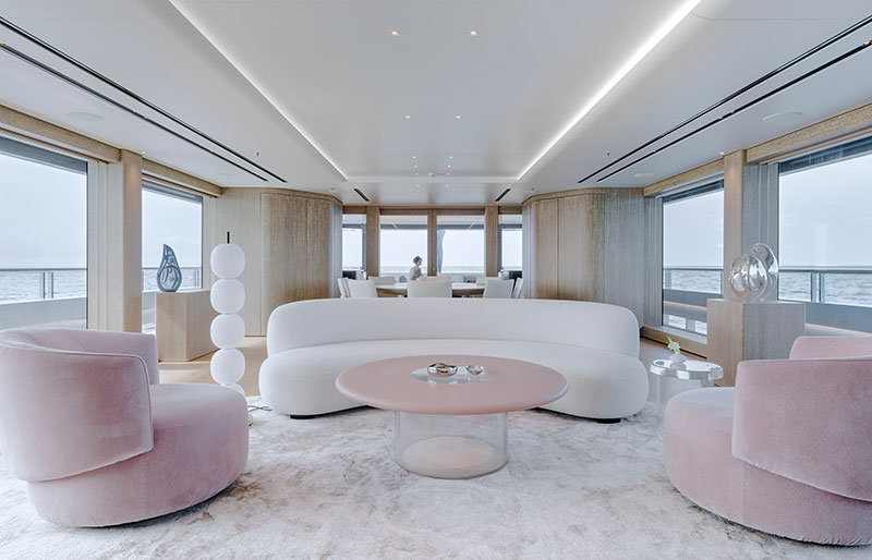 Delivered in 2023, Entourage is the second hull of the Amels 60 Limited Editions series. She wears the signature curves of exterior designer Espen Øino, whose work is synonymous with modern nautical architecture, while her interiors are the brainchild of Toronto-based design studio Burdifilek. Together, they’ve created a vessel that exudes serenity without losing its edge, a yacht for those who expect refinement but crave adventure.