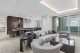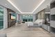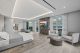 Next to the living area is a gourmet kitchen that caters to your inner chef with Miele and Wolf appliances and innovative design, including a hidden fridge and a disguised wet bar that doubles as a coffee station. Snaidero cabinetry enhances the sleek, modern look, providing ample storage while maintaining the kitchen’s streamlined aesthetic.