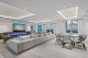 The private quarters are no less impressive. The primary bedroom is a sanctuary featuring dual sitting areas and expansive windows that frame both the beachfront and the Intracoastal. The en suite primary bathroom is akin to a private spa, boasting a double vanity, a double shower with a steam function, a floating bathtub and access to the balcony for unobstructed sunrise and sunset views.