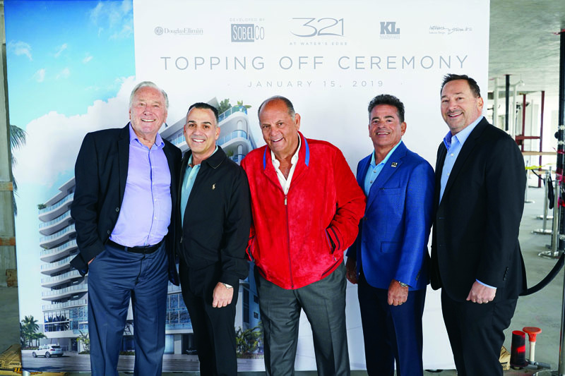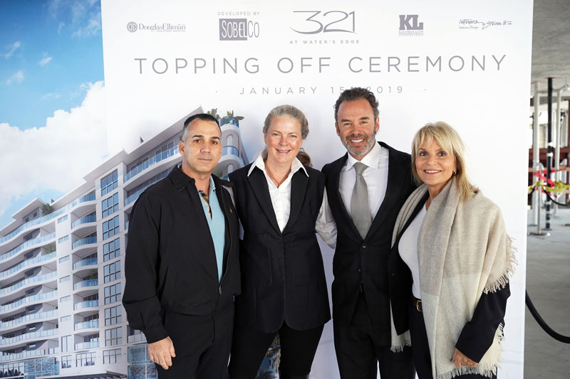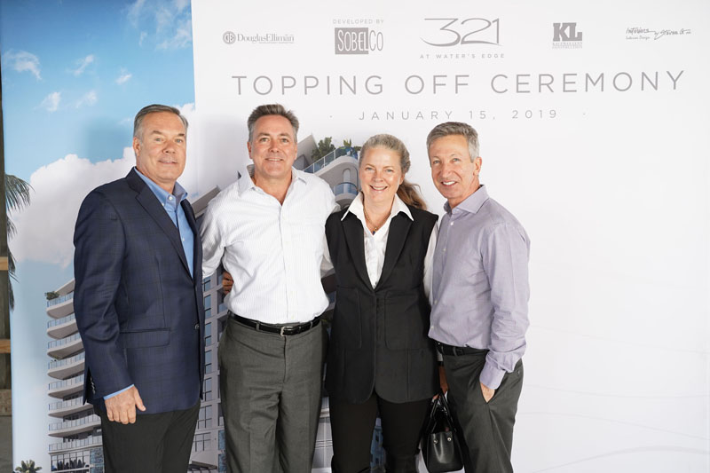 Boca Raton-based real estate development company SobelCo celebrated the topping off of 321 at Water’s Edge with a private event where guests got a behind-the-scenes look at construction while enjoying breakfast and champagne. The ceremonial raising of the palm tree and 321 at Water’s Edge flag to the top of the building also took place.