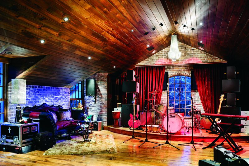 The 6,764-square-foot property features five bedrooms and seven-and-a-half baths. Notable amenities include an elevator, wine cellar, music room, high-tech electronics room with surround sound, two fireplaces and in-law quarters.
