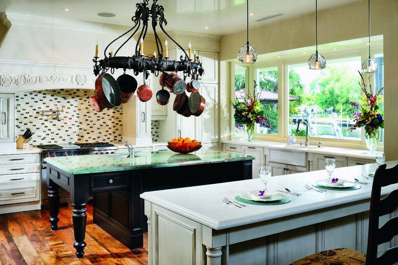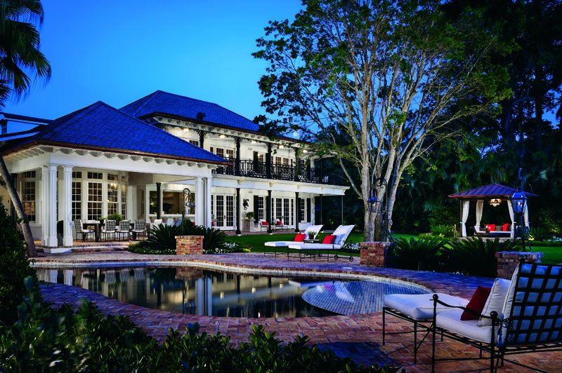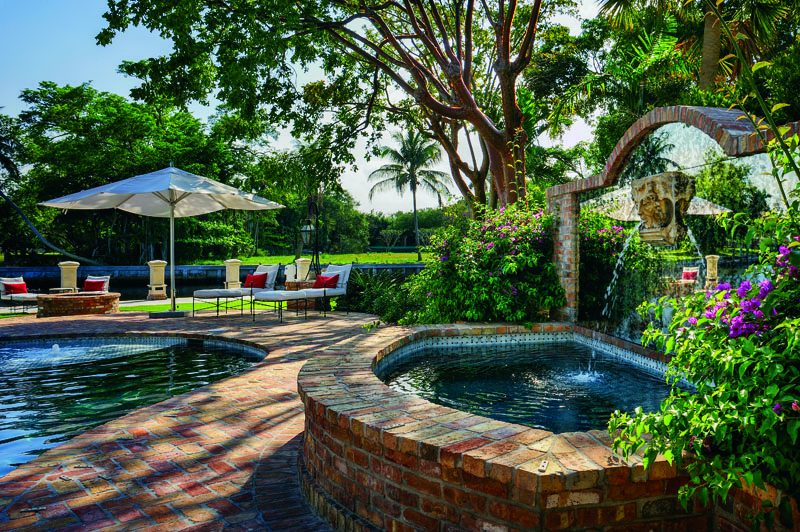 Stepping out for fresh air, you’re quickly reminded of Fort Lauderdale’s best trait: water, water and more water. Located on a rare deep lot on Rio Vista’s Ponce de Leon Isle, the property’s water frontage is about 143 feet. The vast outdoor entertaining area features a 30-foot pool, fountains, built-in grill, movie screen, fiber optics and misters.