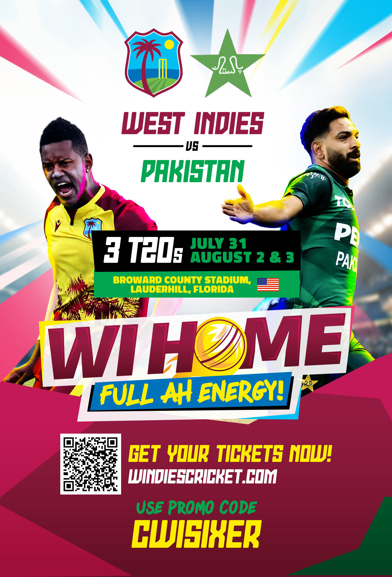 Broward County Stadium 3700 NW 11th Pl,, Lauderhill, United StatesCricket is taking center stage in South Florida as the West Indies host Pakistan for an action-packed three-match T20 International series at Broward County Stadium. Set under the lights in…