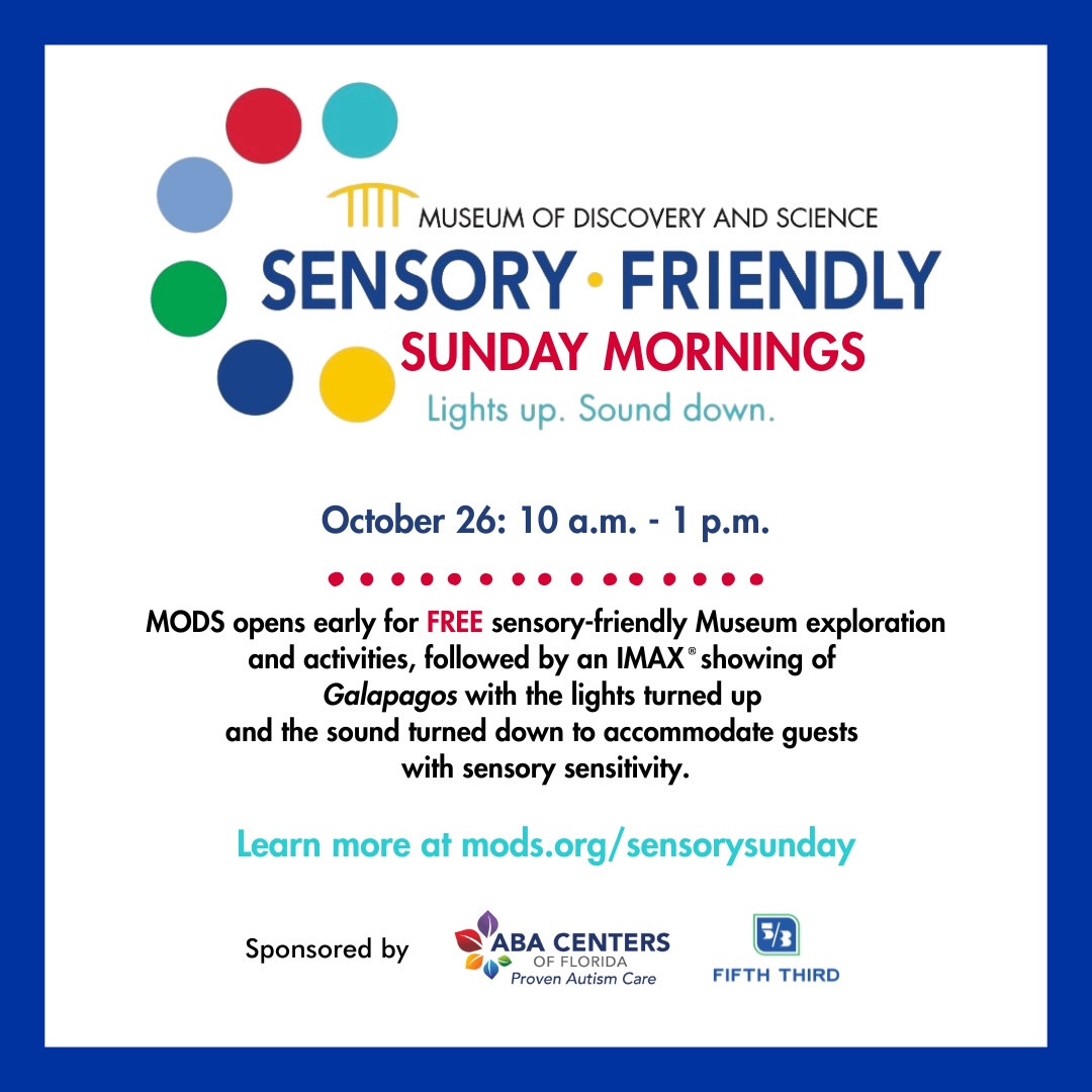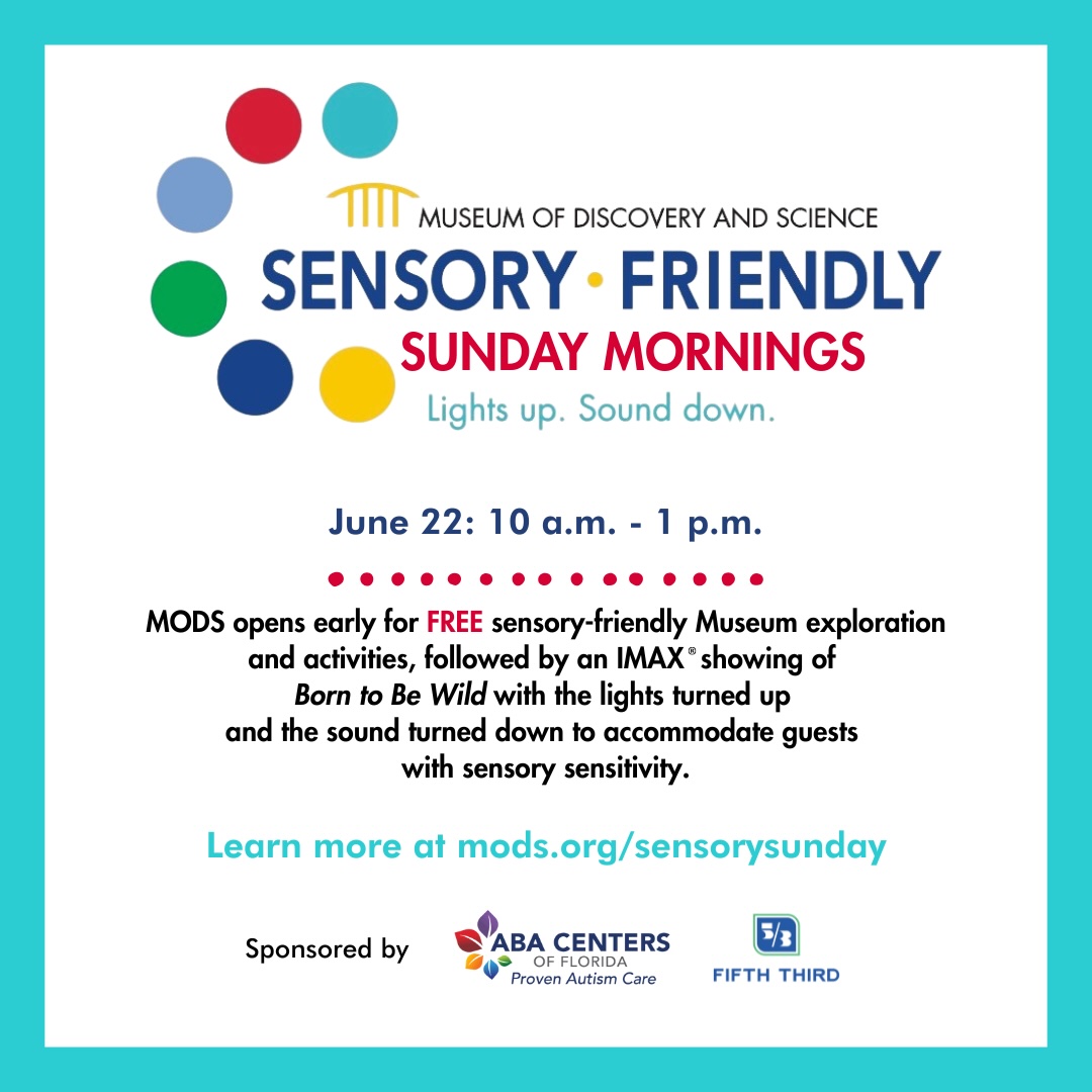 Museum of Discovery and Science 401 SW 2nd St., Fort Lauderdale, FL, United StatesMODS Sensory-Friendly Sundays provide a sensory sensitive environment for individuals on the Autism Spectrum. The museum is open two hours early for exploration and activities followed by an IMAX film…
