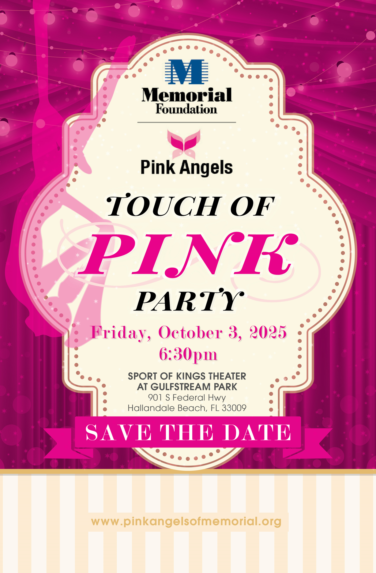 Sport of Kings Theater at Gulfstream Park 901 S Federal Hwy, Hallandale Beach, FL, United StatesDress to impress in your best pink chic attire and join the Memorial Foundation Pink Angels for an unforgettable Touch of Pink Party with a delicious three-course dinner, open bar,…