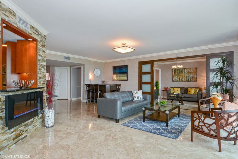 Surrounded by Galleria Mall, Birch State Park, views of the beach and of the canals, Le Club is the prime location for a unit that embraces the elegance of the city and its proximity to the water. The apartment is a total of 2,630 square feet and houses three full bathrooms, three full bedrooms and an office.